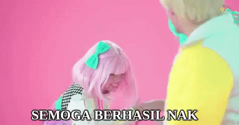 A person with pink hair bows to another, receiving a blessing, with the caption 'May you succeed, child'.