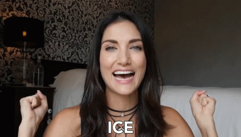 Cindy Sirinya Bishop speaks to the camera with braces, as the word 'ICE' appears on screen.