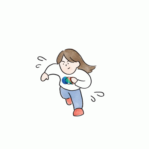 A cute cartoon character, Ida from せんらじ, is depicted running with a determined expression.