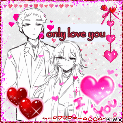 A romantic anime-style drawing of Iderenge and Idea Hagiwara with 'I only love you' text and heart decorations.