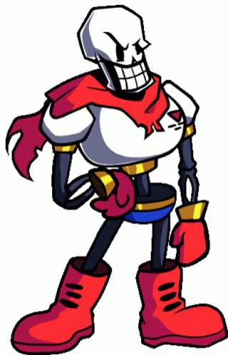 Papyrus from Undertale in his iconic idle stance, featured in Friday Night Funkin' Indie Cross mod, wearing red boots and gloves.