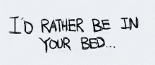 Black and white text displaying the phrase "I'D RATHER BE IN YOUR BED" in a simple, clear font.