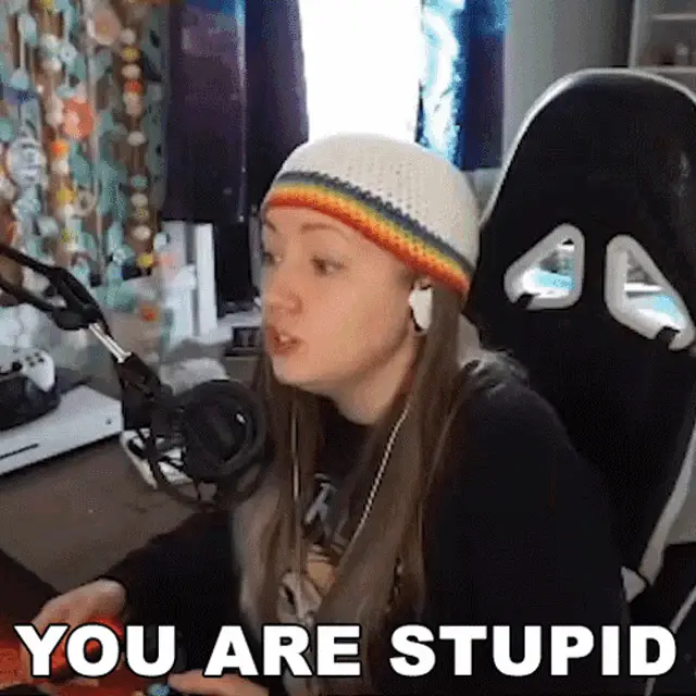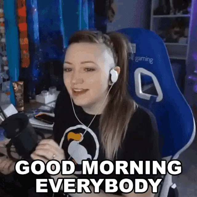 Panser says "If you don't screw it up" while sitting at her desk with headphones and a microphone.