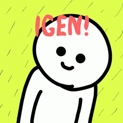 A simple cartoon character, associated with JustVidman, says 'IGEN!' (Yes!) with a changing expression.