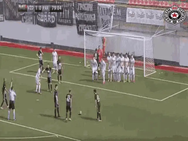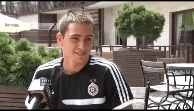 Igor Duljaj, associated with Partizan, runs on the football field during a match or training session.