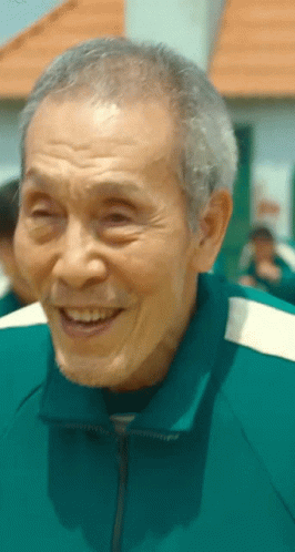 Romik Sim presents Oh Il-nam (Player 001) from Squid Game smiling warmly at the camera.