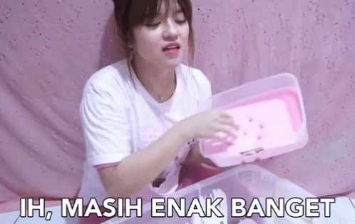 Riya Yaya Riya reacts to the pleasant smell and soft texture of the pink slime she is holding.