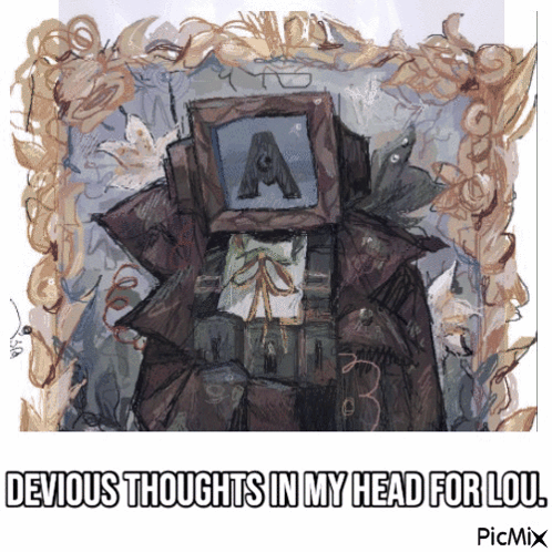 Ihnmaims Harlan Ellison artwork featuring a robot with 'Devious Thoughts in my head for Lou' text.