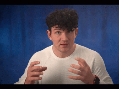 Stas Ikakprosto, a man with curly hair, speaks directly to the camera against a blue background.
