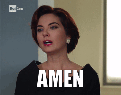 Contessa Adelaide di Sant'Erasmo says 'AMEN' in a dramatic moment from the Italian series Il Paradiso Delle Signore.