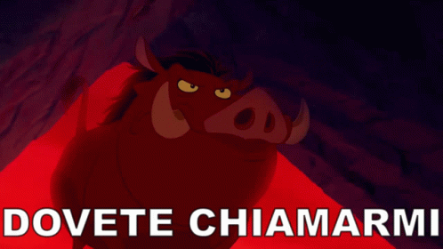 Pumbaa from Il Re Leone (The Lion King) delivers his iconic line: 'Dovete Chiamarmi Signor Maiale!' (You Must Call Me Mr. Pig!).