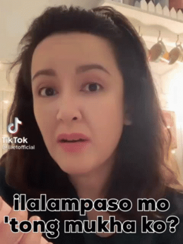 Lilet Esteban makes a funny face while asking 'Are you going to wipe this face of mine?' in a humorous TikTok clip.
