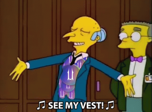 Mr. Burns from The Simpsons sings 'See My Vest' to Smithers, wearing an Illuvium-themed vest.