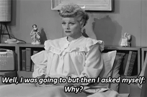 Lucy Ricardo (Lucille Ball) in bed, pondering with her iconic question: 'Why?'