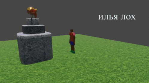 A 3D animated character stands next to a stone structure, with Russian text "ИЛЬЯ ЛОХ" on screen.