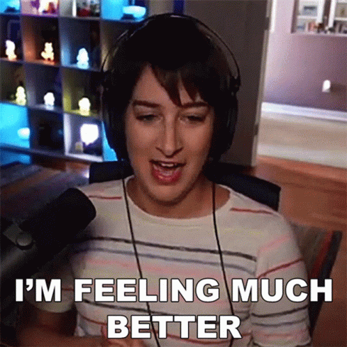 Alli Speed, also known as feralwife, states 'I'm feeling much better' while wearing headphones.
