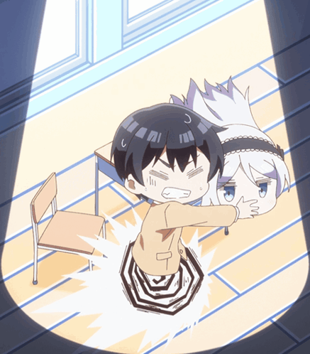 Saito in distress at his desk with Shisei's floating head, a dramatic class scene from 'Im Getting Married'.