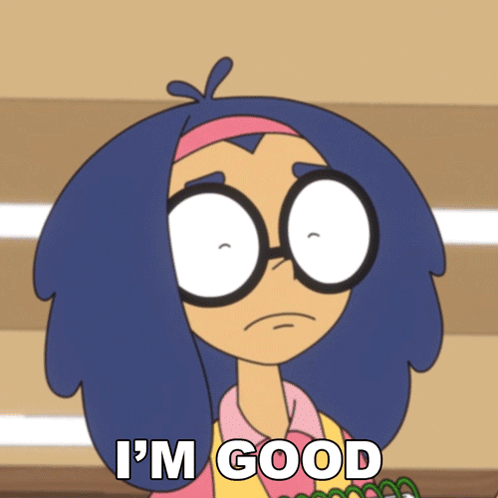 Animated character Saltine from Digman! exclaims 'I'm Good' with wide eyes and a surprised expression.