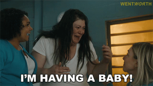 Ruby Mitchell (Rarriwuy Hick) joyfully announces her pregnancy to Allie Novak and Boomer Jenkins in Wentworth.