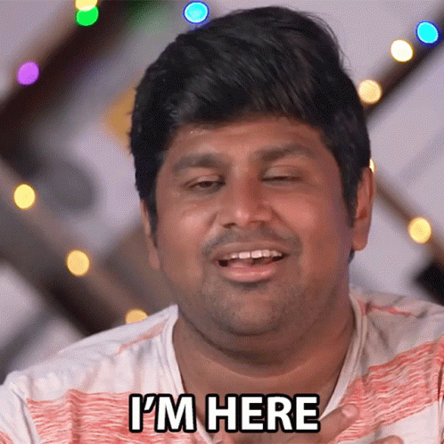 Ashwin Ganesh confidently declares 'I'm Here' to the camera, with a blurred, festive background.