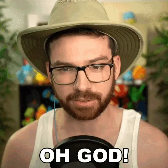 Michael Groth says 'I'm in deep trouble' with a concerned expression, wearing a cap and blue shirt.