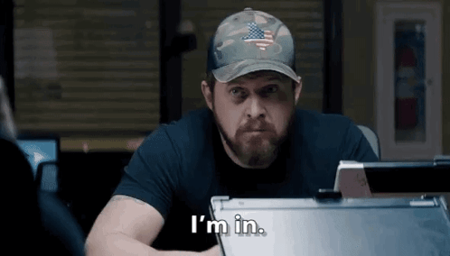 AJ Buckley as Sonny Quinn declares 'I'm in' while sitting at a desk in a scene from Seal Team.