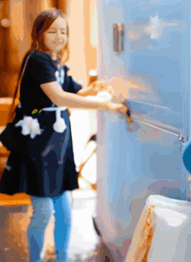 An AI girl opens a blue door, causing a burst of white powder, reflecting the theme of 'I'm Leaving AI Art'.