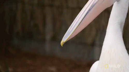 A close-up of an Australian pelican's head and beak, staring directly into the camera.