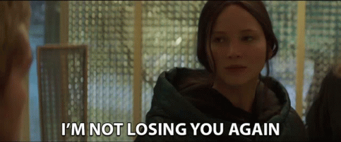Jennifer Lawrence as Katniss Everdeen delivers the emotional line 'I'm not losing you again'.
