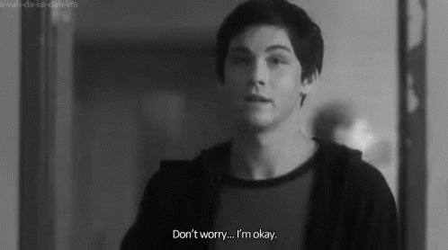 A young man in black and white reassures, "Don't worry... I'm okay."