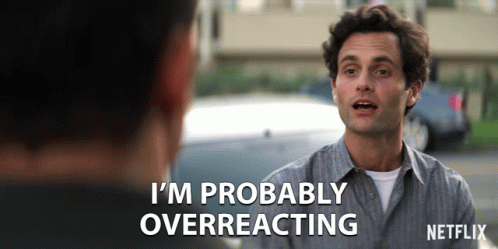 Penn Badgley as Joe Goldberg says 'I'm probably overreacting' in a scene from the Netflix series You.