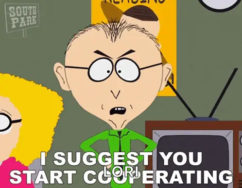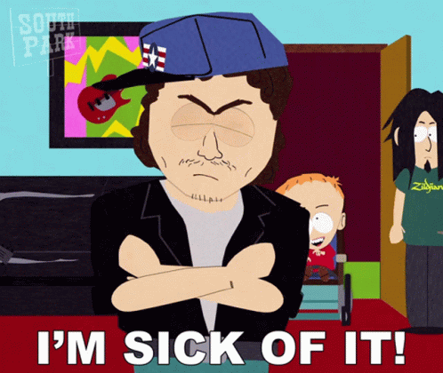 Skyler Morse from South Park, arms crossed, exclaims "I'm Sick Of It!" with Timmy Burch in the background.