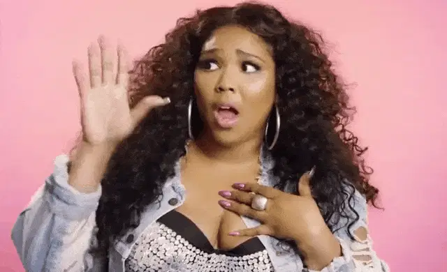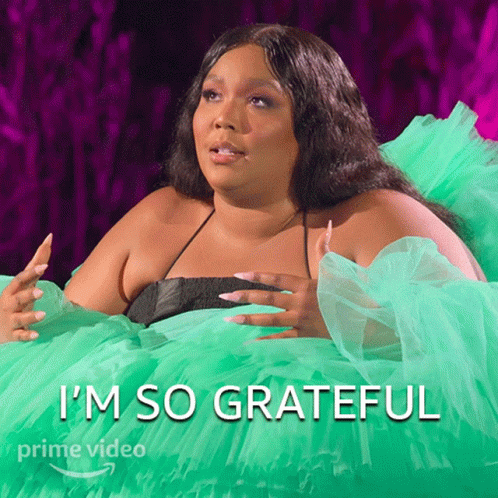 Lizzo, the acclaimed artist, is seen in a vibrant green ruffled dress, expressing gratitude with the caption "I'm So Grateful".