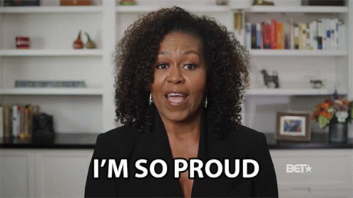 Michelle Obama expresses pride, with "I'm So Proud" text overlay and the BET logo visible.