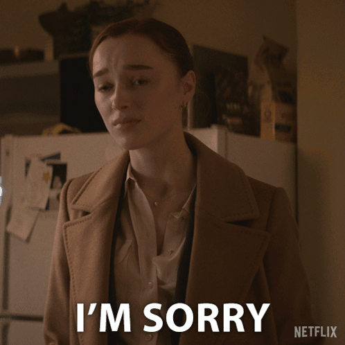 Phoebe Dynevor as Emily, looking remorseful and saying 'I'm sorry' in a scene from Fair Play.