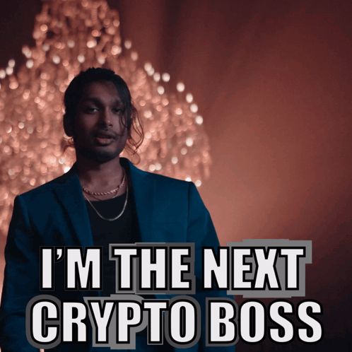 Ashwin Gane declares 'I'm The Next Crypto Boss' in a stylish suit, ready to lead the crypto world.