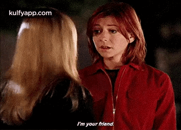 Alyson Hannigan and Sarah Michelle Gellar as Willow and Buffy share a moment with the caption "I'm your friend."
