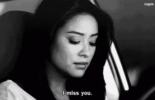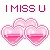 Pixel art featuring three pink hearts with a gradient fill and the text 'I MISS U' above them.