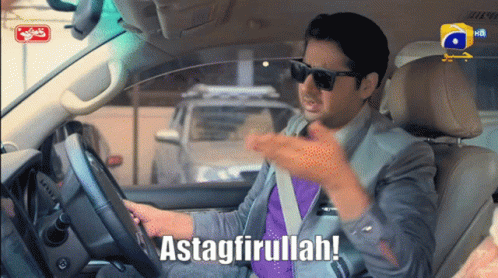 Imran Ashraf as Billu Chaudhry in 'Chaudhry And Sons' reacts with 'Astaghfirullah' while driving.