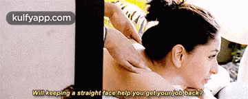 Kareena Kapoor receives a relaxing massage from a man, with a humorous caption about keeping a straight face. Featuring Imran Khan.