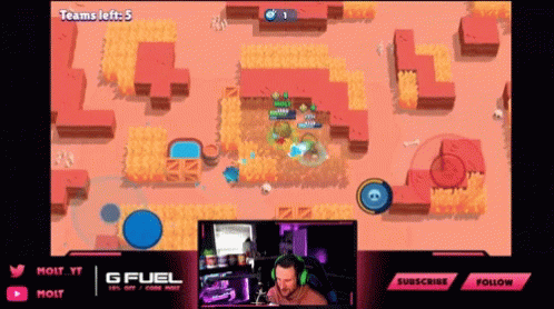 Molt (Michael Holt) streams live gameplay of Brawl Stars, engaging with viewers.