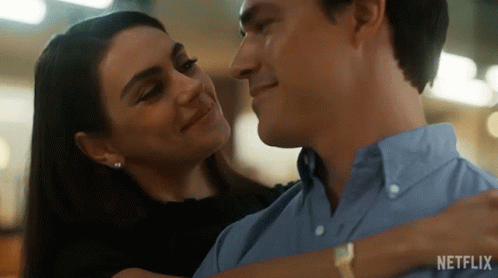 Mila Kunis and Finn Wittrock as Ani Fanelli and Luke Harrison looking lovingly at each other.