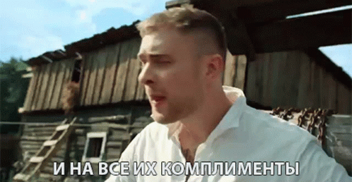 Egor Creed delivers a line, 'And All Their Compliments,' in front of a rustic wooden building.
