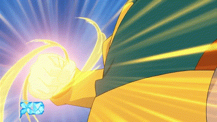 a cartoon drawing of a person holding a sword with a blue diamond in the background