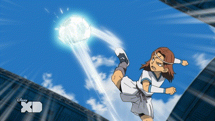 a cartoon of a boy kicking a soccer ball with a disney xd logo behind him