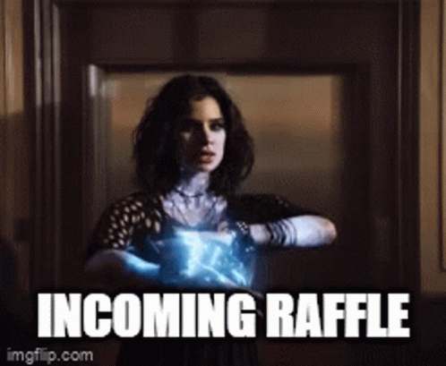 A woman with glowing hands announces an 'Incoming Raffle', signaling a major event.