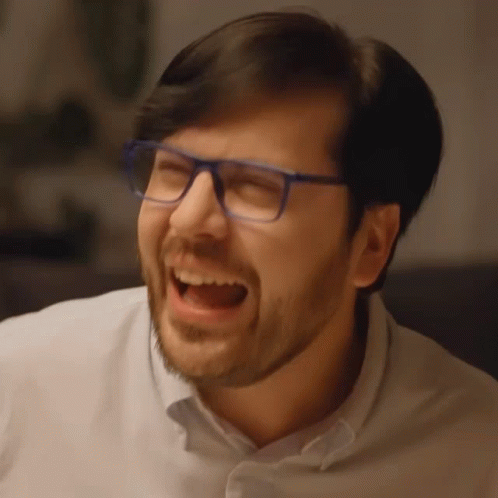 Julio Pañi from Enchufetv laughs awkwardly, wearing blue glasses and a white collared shirt.