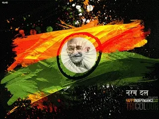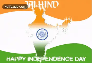 Animated greeting for Happy Independence Day 2023, featuring Indian flag colors and the Ashoka Chakra.