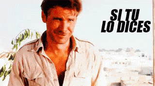 Indiana Jones smiles with the Spanish phrase 'Si Tu Lo Dices' (If You Say So) overlaid.