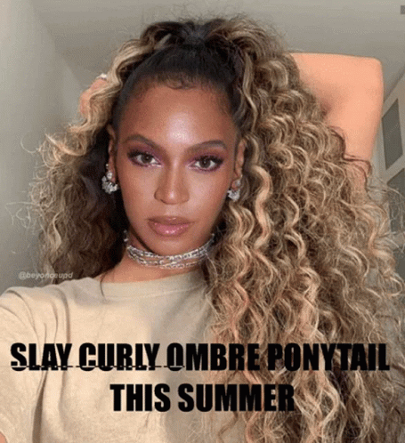 A woman showcases a stunning curly ombre ponytail, perfect for summer. Featuring Indiquehair and Hairlove styles.